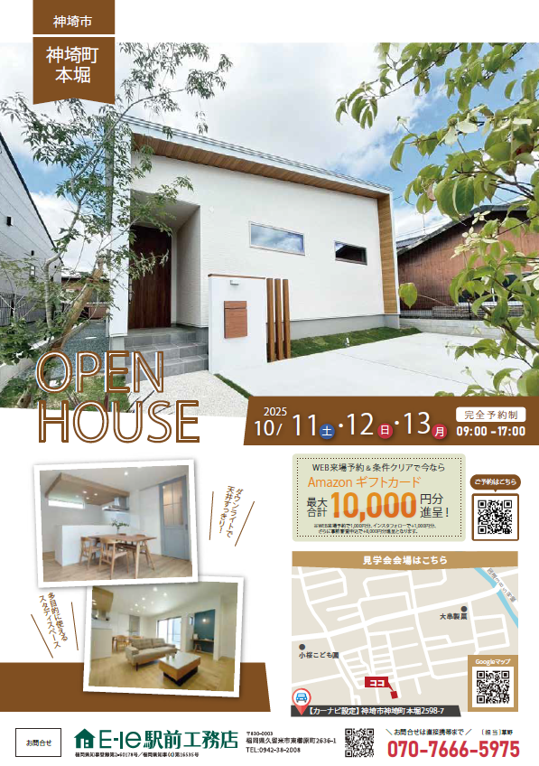 佐賀県神埼市神埼町本堀にて10月11日、12日、13日の3連休で完成見学会を開催いたします