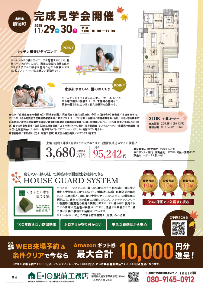 駅前工務店は久留米市東櫛原町に本社を構える工務店です。創業当時より、腐らない緑の柱のハウスガードシステムを採用した住宅建築を手掛けております。注文住宅・建売住宅・リフォーム・アパート建築など、お困りの際はぜひご相談下さい。