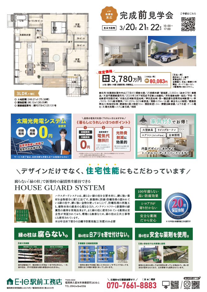 駅前工務店は久留米市東櫛原町に本社を構える工務店です。創業当時より、腐らない緑の柱のハウスガードシステムを採用した住宅建築を手掛けております。注文住宅・建売住宅・リフォーム・アパート建築など、お困りの際はぜひご相談下さい。