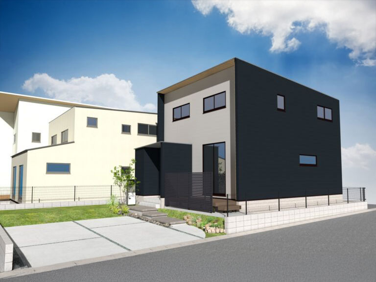 ブラック×グレーを基調に木調がアクセントの洗練されたモダンな外観!リビングの掃き出し窓には電動シャッターを標準搭載し、防犯性と使いやすさを兼ね備えています。キッチンの下がり天井と間接照明はおしゃれでリラックスできる空間に♪収納付き小上がり畳コーナーは、子どもの遊び場や昼寝、家事、客間に最適です。WICは2階に2か所あり、スッキリ片付く設計となっています。