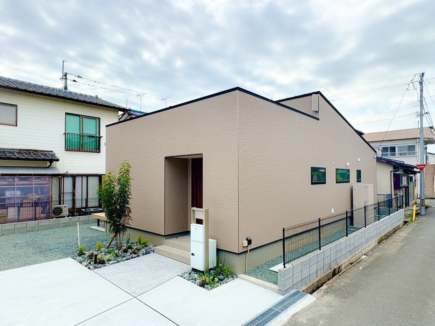 🏠外観は、塗壁調のサイティングと、ブラックのサッシで落ち着いた雰囲気に。内観は、柔らかいベージュや薄い色の床材を使用し、ナチュラルモダンな印象に仕上げました。間取りは、収納が充実したつくりになっており、3帖の脱衣室にたっぷり収納できるリネン庫を。玄関には大きな物もすっきり置ける奥行きのある収納スペースを設置。みんなの集まるリビング空間と、水回りや各部屋にゾーン分けされた人気の間取りです‼