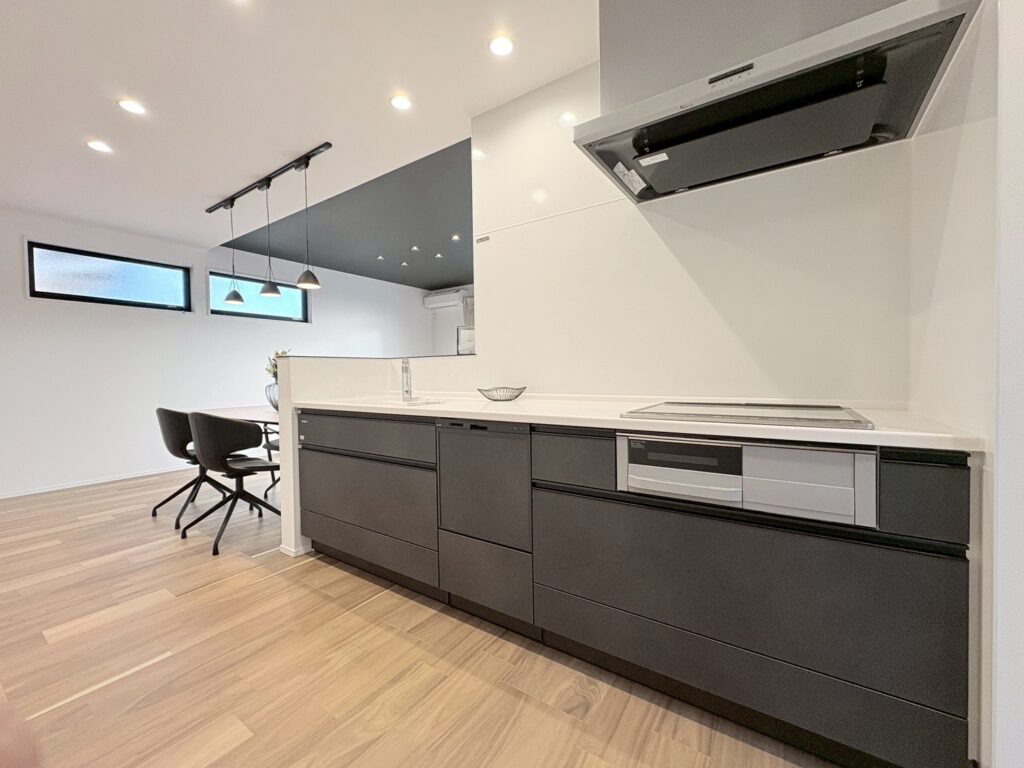 オール電化・エアコン・上下水道・給湯・追炊機能・浴室乾燥機・オートバス・バス1坪以上・ハンギングバー・温水洗浄便座・洗髪洗面化粧台・システムキッチン・IHクッキングヒーター・食器洗浄乾燥機・浄水器・パントリー・全居室収納・電子キー・ウッドデッキ・宅配ボックス・駐車場3台可・太陽光発電システム