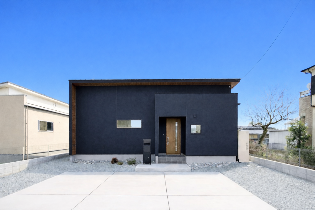 ブラック×木調でかっこよくモダンな雰囲気の外観!