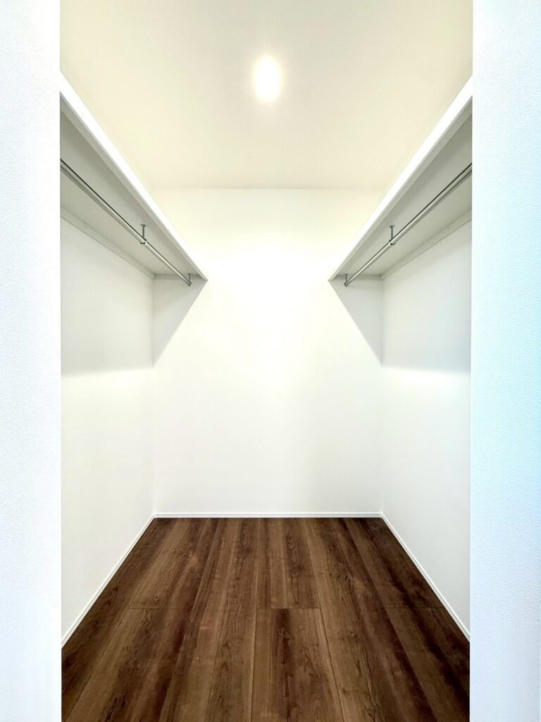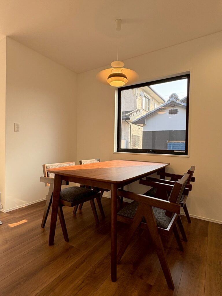 ブラック×木調でかっこよくモダンな雰囲気の外観。3帖畳コーナーは仕切りがないため、リビングの延長として多目的に使えるのが魅力です♪また、空間全体を広く見せることができ、家族や親戚が集まる際も使い勝手が良いです!「玄関➡洗面所➡パントリー➡キッチン」の家事ラク動線で、買い物帰りの荷物の片づけがスムーズ♪帰宅後すぐにリビングを通らずに洗面所へ行けるため、来客時もプライベート空間が見えにくいメリットがあります。