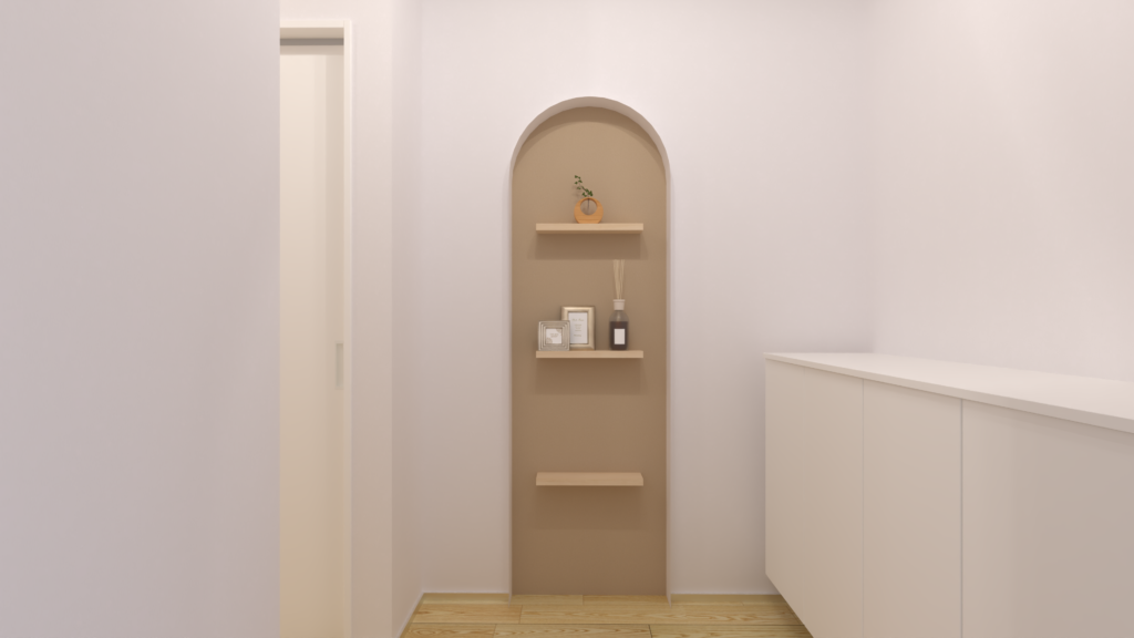 玄関ホールにはアーチ型の飾り棚!小物やグリーンを