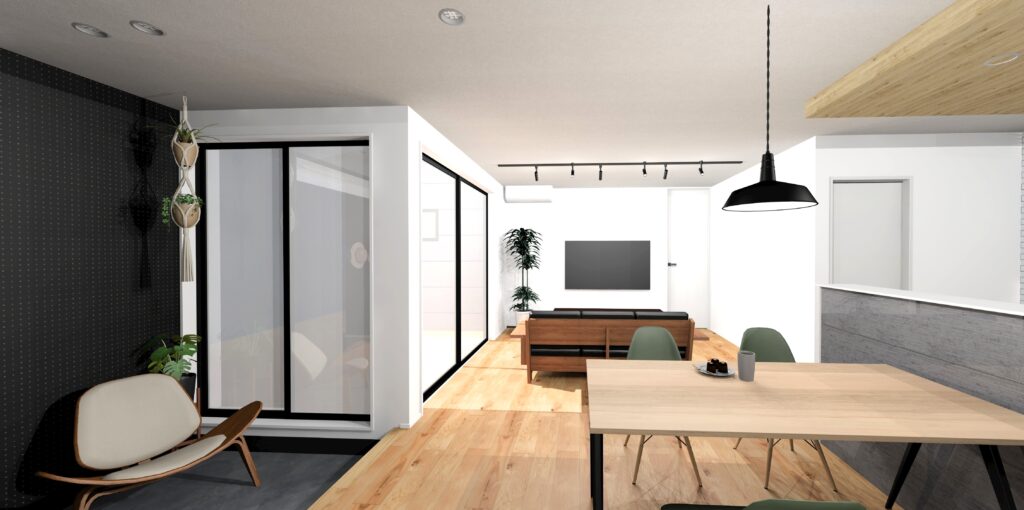 外観は濃紺×木調のアクセントが格好良く、モダンで洗練された印象!