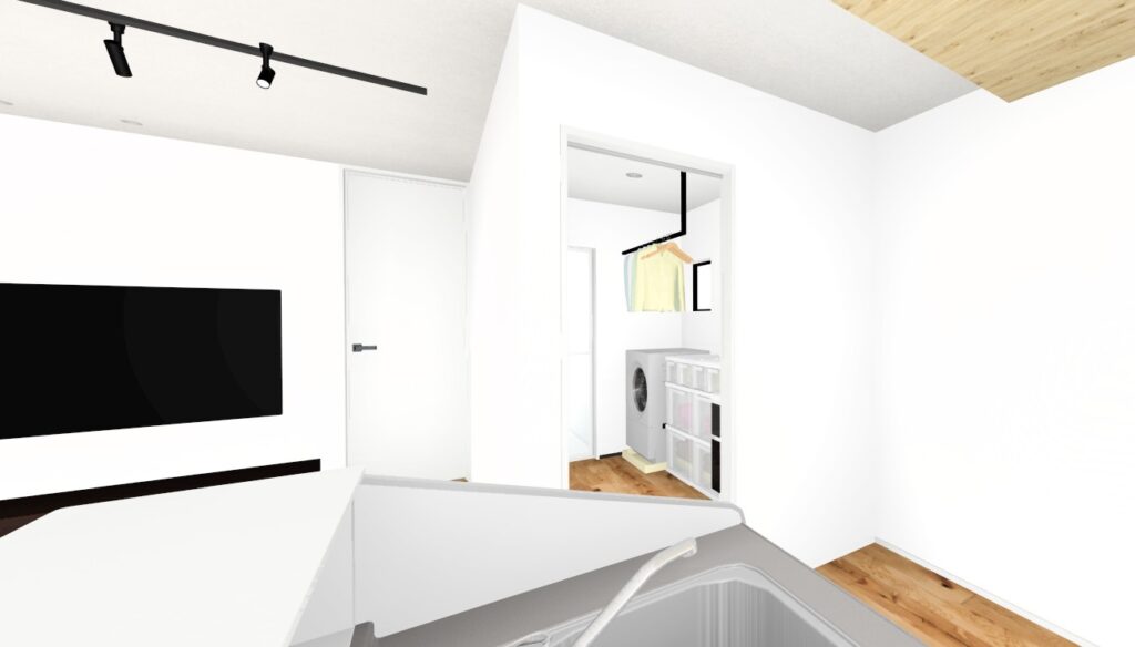 キッチンのすぐ横にランドリーバー付きの洗面脱衣室!水回りがまとまり家事ラク動線が実現。