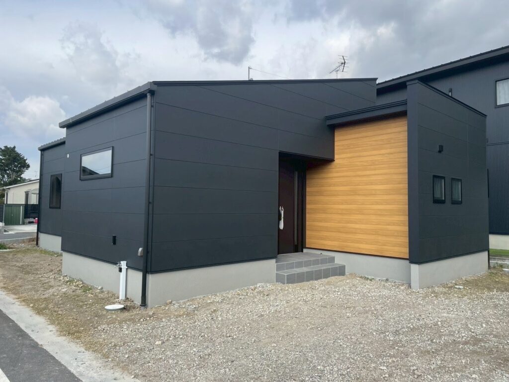 外観は黒を基調に大きな窓と、ラップタイプのサイティングでモダンな印象に仕上げました🏠こだわった間取りは、キッチンパンドリーの扉を抜けると、勝手口や水回りに行ける回遊動線になっておりスムーズに移動できます。お子様の学習やPCスペースに活用できる3帖のスタディスペース付きLDKは、ダイニング奥の吹き抜けにスケルトンの階段があり、開放的でおしゃれな空間を演出します…
