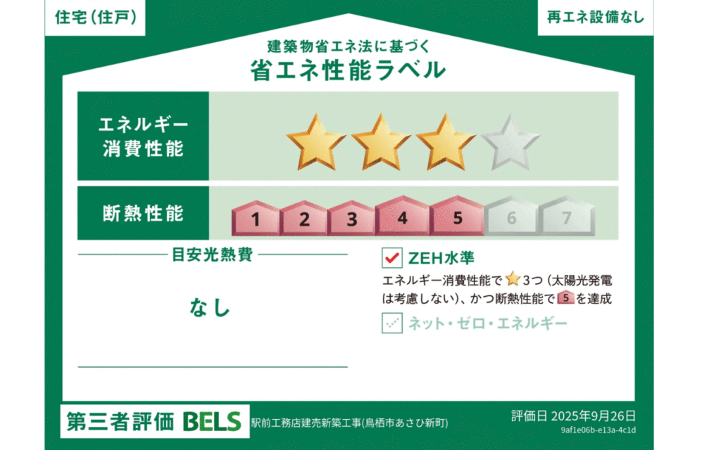 国が定める省エネ基準は☆1つです。削減率が10%向上する毎に☆が1つ増加します。☆の数が多いほど高い省エネ性能を有します。