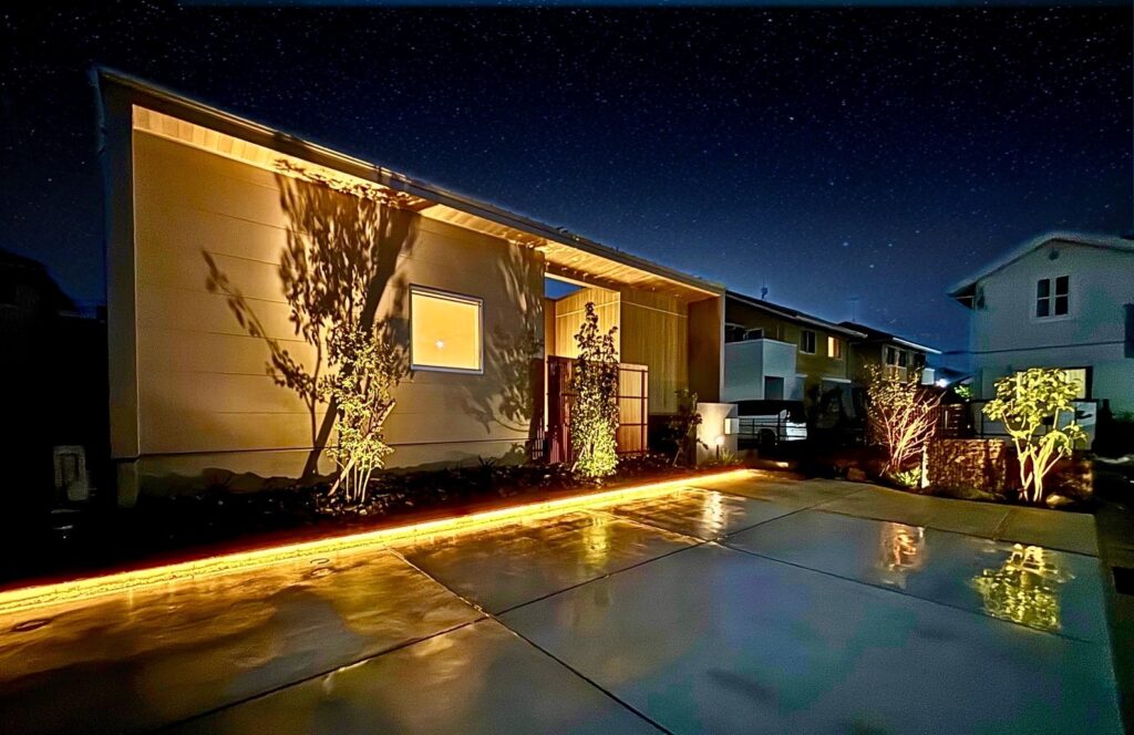 ・ウッドデッキを囲ったおしゃれな木目の軒