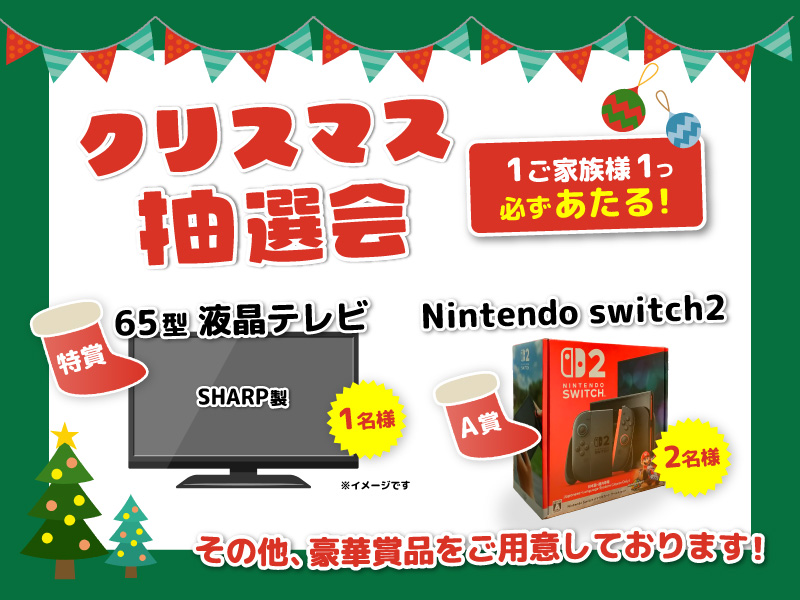 さらに今回は、ご参加いただいたご家族につき1つ必ず景品が当たるチャンスをご用意しています!